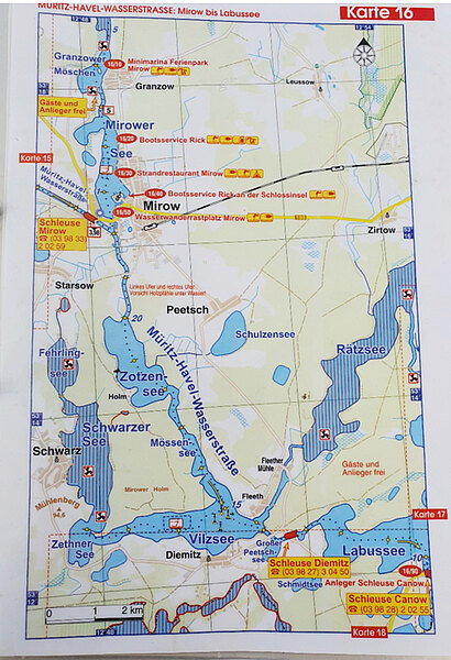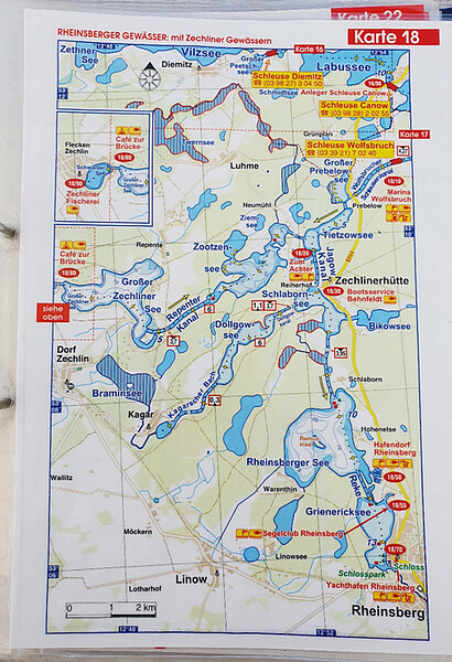 Unser „Revier“ ist auf den Karten ersichtlich. Nur der Pälitz See ist nicht drauf, der ist östlich der Schleusen Canow und Wolfsbruch.