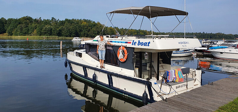 Der erste Tag war sehr gewöhnungsbedürftig. Ein Boot steuert sich ganz anders, wie ein Auto! Es reagiert träge. Man muss immer irgendwie steuern und gegensteuern. Und das soll man nicht zu hastig machen. Es hat fast zwei Tage gedauert, bis es halbwegs ging. Es sind ja nicht nur Seen auf denen man fährt, sondern auch Kanäle mit Gegenverkehr und auf den Kanälen gibt es schmale Brückendurchfahrten! Zum Glück hatte das Boot Bugstrahl und Heckstrahl. Das sollte man als Anfänger auf jeden Fall haben. Ist sehr hilfreich. Und noch wichtig: langsam fahren in den Kanälen, ganz langsam durch Brücken.
